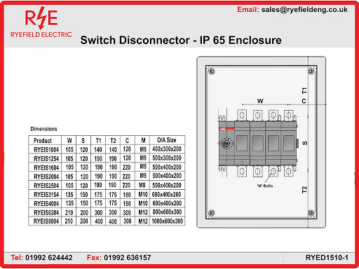RYEIS1004T – 100A 4 Pole Ryefield IP65 Metal Isolator (ABB Mechanism)