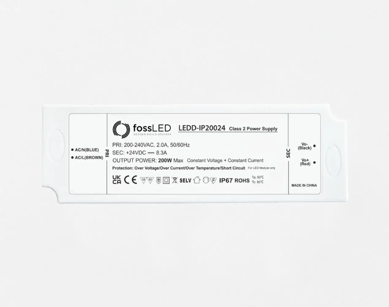 LEDD-IP20024 – FossLED 200W 24V Non-Dimmable Constant Voltage LED Driver
