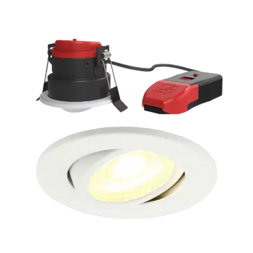 Upgrade your lighting with the versatile and high-performance Ansell Prism Pro CCT Fire Rated Gimbal Dual Wattage White. Designed for residential, hospitality, retail, and commercial applications, this downlight features selectable dual wattage (5W/7W) and CCT options (2700K, 3000K, 4000K, and 6000K) to create the perfect ambiance for any space. The 30° tilt angle adds flexibility, while the innovative 2-part detachable connector ensures quick and easy installation, even in shallow ceiling voids. The downlight is fully tested to meet Building Regulations for fire safety, acoustics, and energy efficiency, making it a reliable choice for modern interiors.