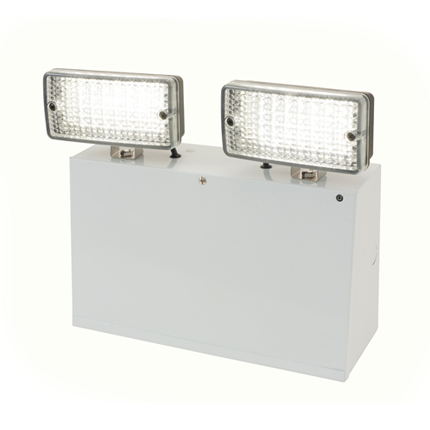 Twin LED emergency floodlighting for industrial applications, Exceeds performance of 2x20W halogen equivalent, Robust metal enclosure in a light grey colour, Moulded polycarbonate heads