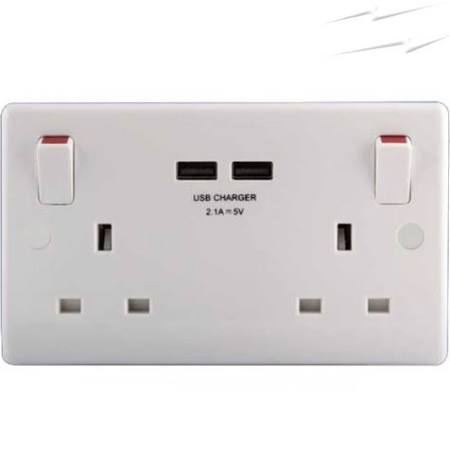 BG Nexus White 822U3 Switched Double Socket & USB ChargerCHARGER