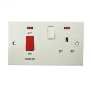 BG Nexus 970 Square Edge White 2G 45A Cooker Panel C/W Single Socket + Neon
