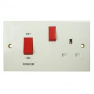BG Nexus 971 Square Edge White 2G 45A Cooker Panel C/W Single Socket