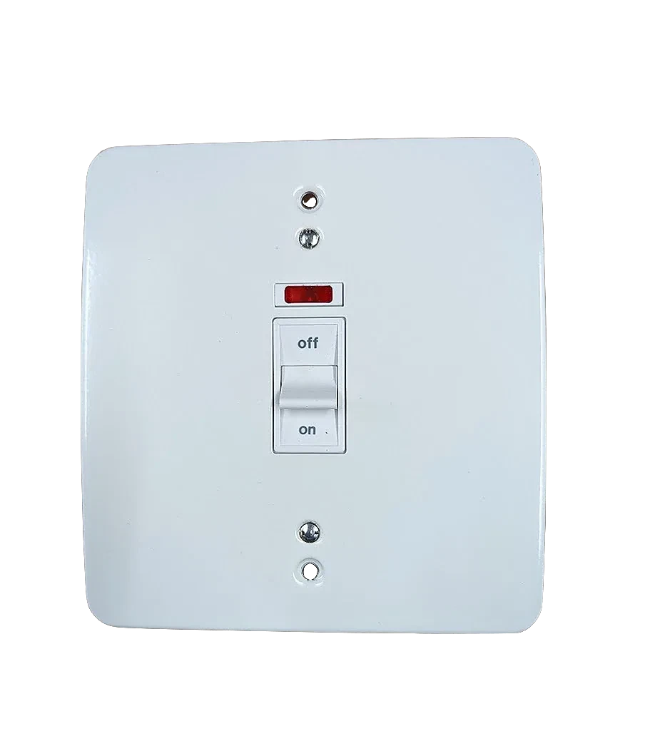 K5012 – MK Logic Plus 50A DP Switch with Neon White Metal