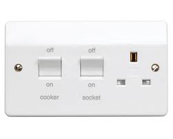 • 45A – 240V ~ double pole switch with 13A – 240V ~ switched socket outlet