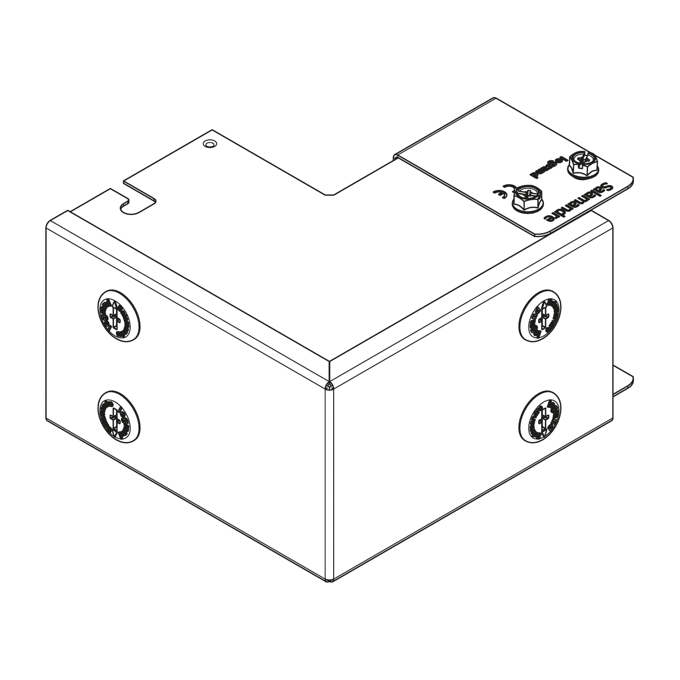 Legrand Salamandre IP4X 90° square (non-gusset) external bend for 100×100mm single compartment pre-galvanised steel distribution trunking. Outside corner profile — supplied with lid, fixings and integrated coupler pre-fitted.