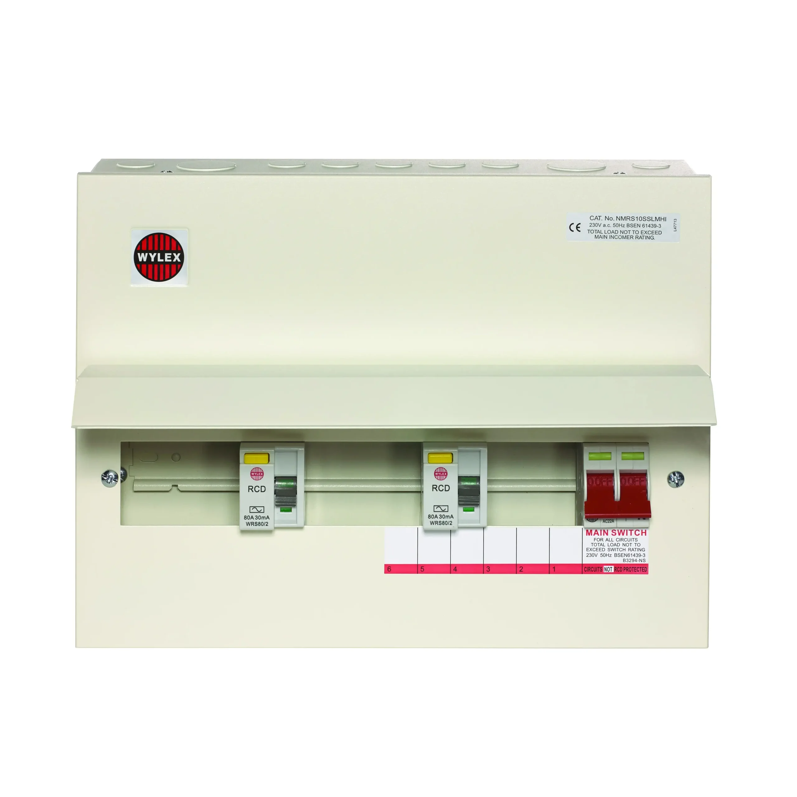 The Wylex NMRS10SSLMHI consumer unit is the ideal choice for electricians and homeowners seeking a compliant, reliable, and robust circuit protection solution.