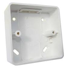 Surface mounted, round edge 1G PVC 44mm deep pattress, complete with trunking/conduit knockouts